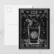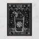 Diseño de la tarjeta tarot grunge para los amantes de la hierba de menta. La menta. Ilustracion blanco y negro con una taza de café con crema batida y manos esqueléticas, dulces y copos de nieve.