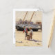 Postal de arte fino con la pintura acuarela del artista estadounidense Winslow Homer (1836-1910), Una cesta de clavos (1873). Dos niños cargando una canasta de almejas en la playa con una goleta al fondo.