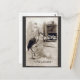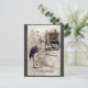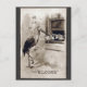 Las manos de "bienvenida" están saliendo por una ventana para aceptar un parto de una cigüeña en este anuncio de nacimiento vintage de 1909.