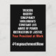 Texto frontal: #ImpeachmentNow Back Text: Traición. La intolerancia. Conspiración. Emolumentos. Mentiras constantes. Abuso de poder. Obstrucción de la justicia. Su presidente en el trabajo. Fuente blanca y roja sobre fondo negro. ¡Personalizable. La resistencia continúa.