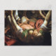 Esta postal presenta una pintura clásica del famoso artista Caravaggio. Fue pintado a principios del siglo XVI. El título de la pintura es "La conversión de Saul". Representa a un joven soldado apuesto y musculoso en el suelo, rodeado de hombres y caballos.