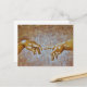 Esta postal de creación de Adán (manos) es una interpretación de la pintura original de Miguel Ángel (c.1508-1512). Esta pintura clásica deriva del Libro del Génesis, e ilustra cuando Dios le dio vida a Adán, el primer hombre.