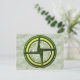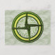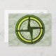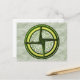 Cruz Verde Brigid sobre fondo de patrón celta verde y blanco.