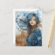 Postal La dama de la ciudad con el pelo azul