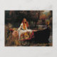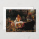 Esta es "La Dama de Shalott", pintada por John William Waterhouse en 1888. Se inspiró en la balada victoriana del mismo nombre escrita por Alfred, Lord Tennyson en 1842. El poema se desarrolla en tiempos medievales, durante el reinado del Rey Arturo. La isla de Shalott habita en un río cerca de Camelot. La Señora de Shalott, una joven y hermosa soltera, vive sola en un castillo de la isla. Está encarcelada en el castillo por una maldición, que le prohíbe mirar directamente al mundo exterior, a Camelot. En cambio, sólo debe ver el mundo en un espejo y entretejer lo que ve en un tapiz. Vive en la desesperación, intentando ser parte del mundo de Camelot y llevar una vida normal. Su desesperación empeora un día cuando ve la reflexión de Sir Lancelot y se enamora de él. A pesar de saber que esto traerá la maldición a la realización, ella lo mira por la ventana directamente. Deseando desesperadamente estar con él y ser parte del mundo, sale del castillo, corre por las riberas del río, entra en un bote y lo coloca río abajo hacia Camelot. Pero el tiempo es terriblemente frío y tormentoso, y la hermosa Dama de Shalott sucumbe al frío y muere trágicamente antes de llegar a Camelot. La ves aquí en su bote justo antes de que se ponga a flote hacia Camelot, sabiendo que morirá.
