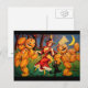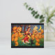 Sorprende a tus amigos con una graciosa tarjeta de Halloween con una bruja bailando con personajes de calabaza y su gato.