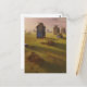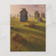 AI presentó una postal de arte digital con la pintura de una bella escena pastorial vintage de filas de colmenas de madera en un campo.