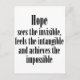 Hermoso, casi poético dicho sobre las cualidades de la esperanza: "La esperanza ve a los invisibles, siente lo intangible y logra lo imposible".