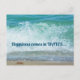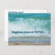La felicidad viene en OLAS... ¡SEAS el día! Una postal con una hermosa afirmación inspiradora positiva frente a un mar de azul tropical con una ola blanca salpicada mientras el brillante océano se rompe a lo largo de la playa de arena. Esta imagen es fotografía original del océano de JLW_PHOTOGRAPHY.
