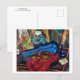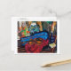 Postal de arte fino con la pintura de la artista francesa Suzanne Valadon (1865-1938), The Violin Funda (1923). Fue la primera pintora admitida en la Société Nationale des Beaux-Arts. Retrato de un violín fino en un funda de terciopelo azul sobre una mesa con una olla de tulipanes de arcilla.