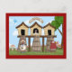 El gallinero con un pollo en su nido de huevos y dos gallinas en el mercado con sus bolsos de mano. Cute Americana.