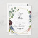 Esta geométrica de oro burdeos, salvo la postal de fecha, es perfecta para una boda de invierno. El elegante diseño de boho cuenta con una marina acuarela, flores color rosa rubor y flores enológicas con detalles artísticos pintados con lápices.