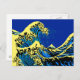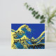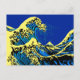 Postal La gran ola de Hokusai al estilo pop amarillo azul