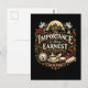 Un diseño de cubierta de libro victoriano ricamente ornamentado para la comedia clásica de Oscar Wilde, que presenta tipografía dorada, querubines, rosas rojas, un reloj de bolsillo, taza de té y anillo de compromiso contra un dramático fondo negro.