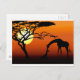 Postal La jirafa madre y el bebé en el atardecer africano
