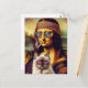 Postal La joven hippie Mona Lisa y su gato himalayo