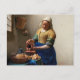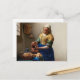 Una pintura clásica de Johannes Vermeer para una postal elegante.