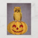Ilustracion vintage en naranja de una lechuza sentada encima de una linterna