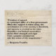 Texto: "La libertad de expresión es el pilar principal de un gobierno libre: cuando se quita este apoyo, se disuelve la constitución de una sociedad libre y se erige la tiranía sobre sus ruinas. Las repúblicas y las monarquías limitadas obtienen su fortaleza y vigor de un examen popular en las acciones de los magistrados."— Benjamin Franklin Antecedentes: La primera página de la Constitución, incluido el preámbulo We the People y el comienzo del artículo I, que enumera el poder y la autoridad del legislativo. El presidente en ejercicio de Estados Unidos ha dicho que una prensa libre es el enemigo del pueblo. Si eres un estudiante de historia mundial, sabes que estas son las palabras que usan los dictadores para controlar a los medios y a su gente. La primera enmienda, y la libertad de prensa, son esenciales para una democracia que funcione. La resistencia continúa, en los ídos de Trump (15 de marzo, #IdesOfTrump) y todos los días.