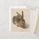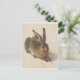 Fina arte del siglo XVI de Albrecht Durer. El conejo joven con orejas largas y colores dorados se sienta sobre un fondo rosa pálido.