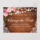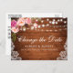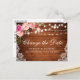 Moderna y elegante acuarela color rosa Rubor Cambio floral La postal de postposición del Boda de fecha presenta rosas rosas rosas rosas y vegetación en madera rústica con luces de cuerda y encaje.