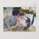 "Mary Stevenson Cassatt (22 de mayo de 1844 - 14 de junio de 1926) era una pintora y grabadora americana. Nació en Allegheny City, Pennsylvania (ahora parte del lado norte de Pittsburgh), pero vivió gran parte de su vida adulta en Francia, donde se hizo amiga de Edgar Degas y luego expuso entre los impresionistas. Con frecuencia, Cassatt creó imágenes de la vida social y privada de las mujeres, con especial hincapié en los vínculos íntimos entre las madres y los hijos. Gustave Geffroy la describió en 1894 como una de las "tres grandes dames" del impresionismo junto a Marie Bracquemond y Berthe Morisot. En 1879, Diego Martelli la comparó con Degas, pues ambos intentaban representar el movimiento, la luz y el diseño en el sentido más moderno. Cita:Wikipedia"