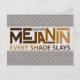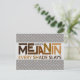 Tarjeta de felicitación con tipografía moderna y un mensaje empoderador para todos los BIPOC: "Hecho con melanina, cada tonalidad arrasa" - sobre fondo de metal industrial falso