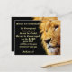 Tarjeta de memorización del versículo bíblico de Josué 1:9. Esta tarjeta es del versículo Josué 1:9, que dice "¿No te lo he mandado? ¡Sé fuerte y valiente! No te desanimes ni te asustes, porque el SEÑOR tu Dios estará contigo dondequiera que vayas". Presenta un león - simbólico del León de Judá - en el anverso y el reverso. Esta tarjeta es perfecta para que cualquiera memorice o medite en este versículo bíblico. Una foto del león está en ambos lados. Un lado tiene todo el versículo y el otro solo la dirección del versículo bíblico.