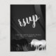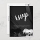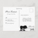 Una hermosa postal cuadrada "RSVP". Para las parejas que quieren una simple pero elegante invitación de boda "RSVP". El diseño incluye nombres de novias y novios y un unicornio negro y plateado. Mostrado en negro y plata con un elegante fondo giratorio negro. Personalizable con los detalles de su boda RSVP. Diseñado por Robin D. Cox.