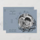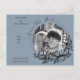 Moderno Dusty Blue Photo Wedding Save the Date Esta elegante boda Save the Date incluye tu foto favorita de compromiso en una corona floral con elegantes letras negras sobre un polvoriento fondo azul. Personaliza con tus nombres, fecha, ubicación y sitio web del boda.