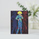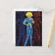 Embarquémonos en un viaje cósmico con este cautivador dibujo de arte digital. Conozcan a una mujer mágica de las profundidades del espacio, adornada con un encantador traje azul y con un cabello amarillo lindo