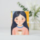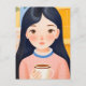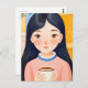 Postal La mujer feliz en el café