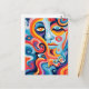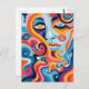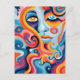 Una mezcla vibrante de colores giratorios forma el retrato abstracto de una cara, con una combinación caprichosa de líneas y formas rizadas. La mitad de la cara está decorada con colores cálidos como el rojo, el naranja y el amarillo, mientras que los tonos azules y morados más fríos decoran la otra mitad, creando un contraste crudo y armonioso.