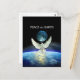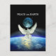 Una paloma blanca de la paz se cierne sobre el planeta Tierra con la luna como telón de fondo. La paloma es un símbolo universal de paz y es una imagen esperanzadora para los Navidades y las fiestas de Hanukkah, para el Año Nuevo y para todos los días del año, al tiempo que expresamos nuestros deseos de paz mundial y buena voluntad para todos.