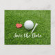 Postal La pelota de golf SAVE THE FATE con tee y love