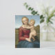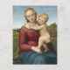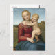 La Pequeña Madonna de Vino (1505) de Rafael es una obra maestra del Renacimiento que representa a la Virgen María de manera ordenada sosteniendo al Niño Cristo en un paisaje sereno. La pintura ejemplifica el estilo característico de Raphael, caracterizado por un modelado suave, una composición armoniosa y frágiles transiciones de color. María, vestida con un vestido rojo con un manto azul, mira con suavidad al espectador mientras el niño Jesús se sienta cómodamente en su regazo, simbolizando el amor materno y la gracia divina. El tranquilo paisaje de fondo realza el sentido de paz y belleza natural de la pintura, reflejando la influencia de Leonardo da Vinci y la profunda devoción de Rafael a los temas religiosos. Utilice las herramientas de diseño para agregar texto personalizado o personalizar la imagen.