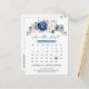 El agitado calendario floral azul salva la postal de fecha con elegante ramo de azul marino, azul real , blanco , dorado, marfil de champán, rosa de color rubor , brotes de flores de ranunculus y hojas de eucalipto verde salado y elegante ramo de acuarela. Comuníquese conmigo para obtener ayuda sobre la personalización o si necesita cualquier otro producto con este diseño.