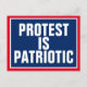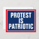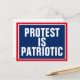 La protesta es patriótica y una primera enmienda básica. Descripción del diseño: Como se muestra, texto blanco en un rectángulo azul. Fondo rojo.Texto: La protesta es patriótica.