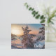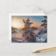 Postal La puesta de sol sobre la costa del mar con nevada