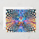 Una imagen del Buda en una representación de un universo interconectado. Colores psicodélicos.