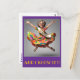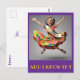 ¡Sí señor!! ¡Lo logró!! La señora está feliz porque se jubiló oficialmente, así que está saltando alegremente y a partir de ahora tendrá tiempo para sí misma. Lleva un vestido brillante y colorido que combina con sus zapatos. El cartel en su pecho le recuerda que acaba de lograrlo. Tarjeta postal personalizable para felicitar a tu ser querido compañero de trabajo.