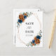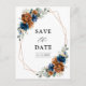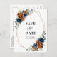 Elegante azul marino, terracota , temática Naranja de la tierra floral salva la postal de fecha con elegante ramo de azul marino, rosas de color terracota y hojas de eucalipto verde. Comuníquese conmigo para obtener ayuda sobre la personalización o si necesita cualquier otro producto con este diseño.