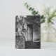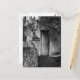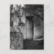 Una foto encantadora en blanco y negro de una pequeña vertiente en la esquina lejos trasera de un cementerio con hojas de la caída y una piedra sepulcral cruzada cerca cerca en una postal.