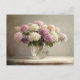 Esta elegante pintura digital exhibe un exuberante ramo de hortensias en flor, con una rica mezcla de blanco, púrpura y rosa. Las delicadas pinceladas y la iluminación tenue crean un ambiente elegante, perfecto para una decoración floral y botánica.