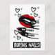 La vida es muy corta para tener uñas aburridas, este diseño presenta labios rojos y largas uñas negras y texto que dice "La vida es demasiado aburrida para tener uñas aburridas".