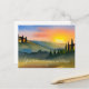 Hermosa postal cuenta con una inspiradora cita de Rumi sobre el paisaje acuático que representa las colinas ondulantes de la Toscana al atardecer. La cita de Rumi dice: "La vida es un equilibrio de aferrarse y soltarse".