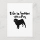 Cute, "La vida es mejor con un diseño de Pug". Disponible en camisetas, sudaderas, capuchas, tazas, mousepads, tarjetas, pegatinas y más.