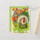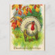 Esta postal antigua presenta un pavo blanco en un campo de hierba con hojas por encima. ¡Disfruta de tu nueva Turquía blanca vintage en postal de hierba!