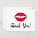 Estilo de labial rojo ombre brillante con una impresión de beso y un texto de caligrafía personalizable con el mensaje "¡Gracias!". Crea tus propias tarjetas de agradecimiento. La imagen es independiente del mensaje de texto, lo que te permite personalizar el tamaño y la ubicación de los labios