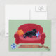 Pintado caprichoso y lindo Labrador Recuperador pintado por Naomi Ochiai de Japón. Bonitos regalos para los amantes del perro que aman a los perros Labrador Retriever. Un adorable Labrador Negro juega con su juguete favorito en su sofá rosa. Es tan dulce. ¡Puedes personalizar de texto y más!